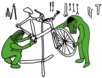 Einmal in der Woche öffnen wir unsere Werkstatt für Radfahrer*innen mit Fluchterfahrung. Bei offenen Fragen helfen dir geübte Schrauber*innen aus unserer Werkstatt weiter.